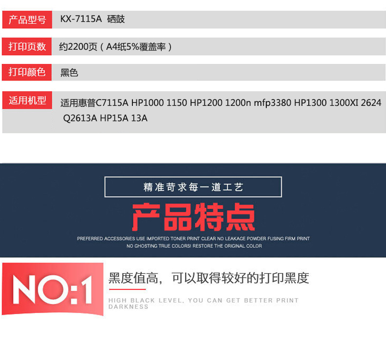 凱欣標(biāo)準(zhǔn)版 KX-C7115A硒鼓 適用惠普C7115A硒鼓HP1000 1150 HP1200 1200n mfp3380 HP1300 1300XI 2624 Q2613A易加粉 全國統(tǒng)一價(jià):146元