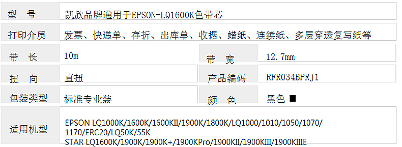 凱欣 KX-LQ1600KIIIH 適用愛(ài)普生EPSON LQ1600K3H 2680k 2090 FX2190 全國(guó)統(tǒng)一價(jià):72元/6個(gè)