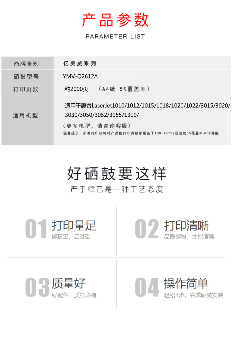 億美威 YMV-Q2612A 惠普 LaserJet1010/1012/1015/1018/1020 全國統(tǒng)一價(jià):178元
