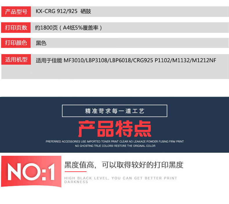 凱欣標準版 KX-CRG912/925硒鼓 適用于佳能 MF3010/LBP3108/LBP6018/CRG925 惠普P1102全國統(tǒng)一價:126元